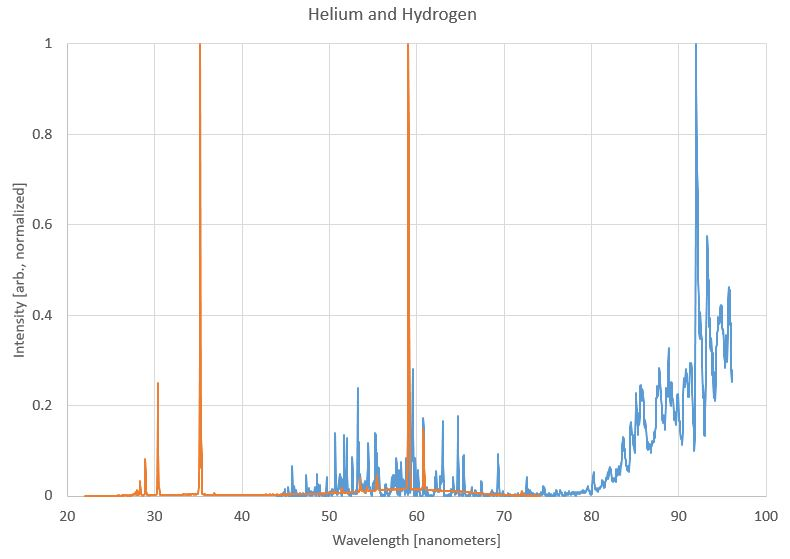 注:MgO光譜是用251MX型號配置CCD探測的;300g/mm光柵用于氦和氫數據;MgO和Al-K數據使用2400g/mm光柵;其余為1200g/mm像差校正的平場光柵;光源為McPherson無窗空心陰極燈和軟X射線(SXR)固態陽極源。