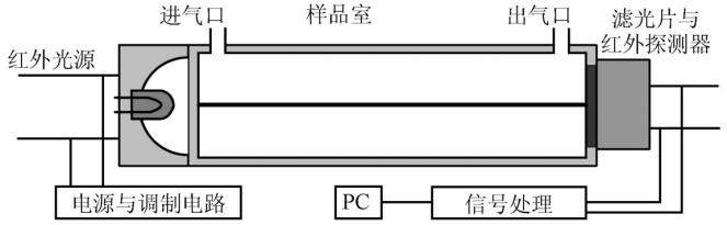二、 紅外吸收氣體傳感器工作過程的示意圖
