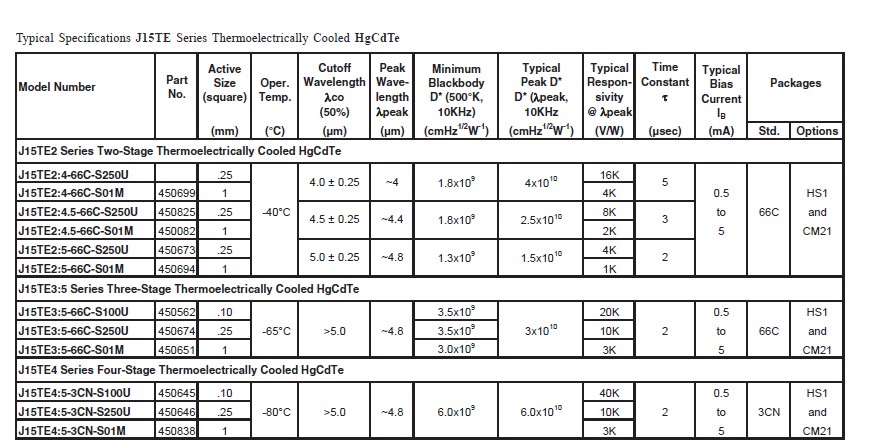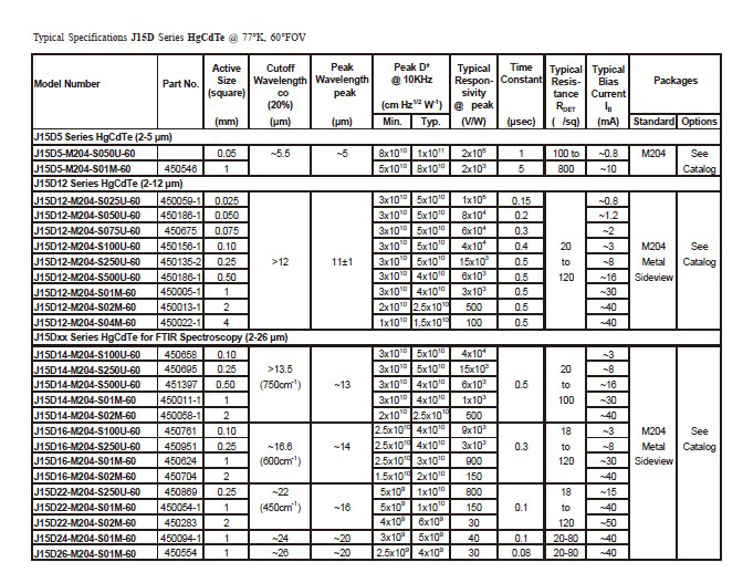 針對于FTIR特點(diǎn),美國JUDSON公司的MCT探測器,具備靈敏度高,信噪比好等性能優(yōu)點(diǎn),涵蓋2-22um的寬光譜范圍,從而能夠有效凸顯FTIR性能特點(diǎn),進(jìn)一步提升FTIR的性能優(yōu)勢。該系列產(chǎn)品有兩種制冷方式可供選擇,TE制冷與液氮制冷,既可以滿足用戶對高性能的追求,又能夠提升探測器使用的方便性。