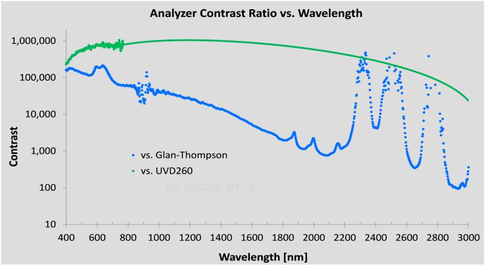 Moxtek UVD260和UVD240偏振片可用于光譜儀,與Glan-Taylor棱鏡相比,其小尺寸、寬接受角、均勻性和寬波長帶寬特點具備明顯的優(yōu)勢,另外相比傳統(tǒng)的Glan-Taylor棱鏡,UVD系列偏振片還具有更高的對比度和透過率,同時支持更大的AOI,需要更少的空間,沒有光學像差,厚度僅為2mm左右。