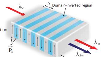 - 準(zhǔn)相位匹配:雙折射相位匹配存在玻應(yīng)廷走離效應(yīng),限制了非線性轉(zhuǎn)換效率的提高,而準(zhǔn)相位匹配不存在這樣的缺點(diǎn),可以在整個(gè)晶體長(zhǎng)度上實(shí)現(xiàn)非臨界匹配,因此其相互作用長(zhǎng)度不受限制,并且可以獲得在晶體的透過(guò)范圍內(nèi)整個(gè)光譜的諧波輸出