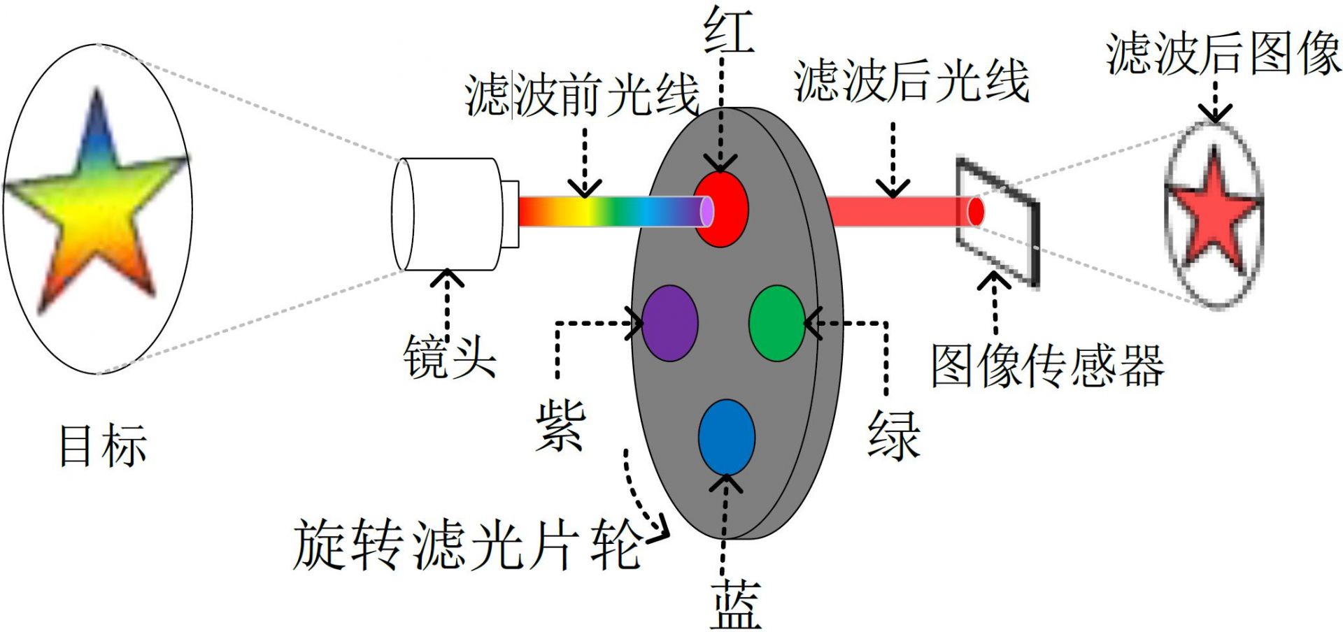 濾光片式彩色亮度計的色度測量功能的實現,是通過用合適的濾光片模擬人眼對光的響應,從而使加濾光片以后的圖像傳感器的相對光譜響應度與CIE 1931標準色度觀察者色匹配函數相接近。其測色原理如下: