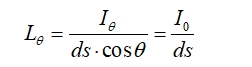 光度學的亮度定義如圖2所示,對應朗伯光型的光源在θ角方向亮度為:
