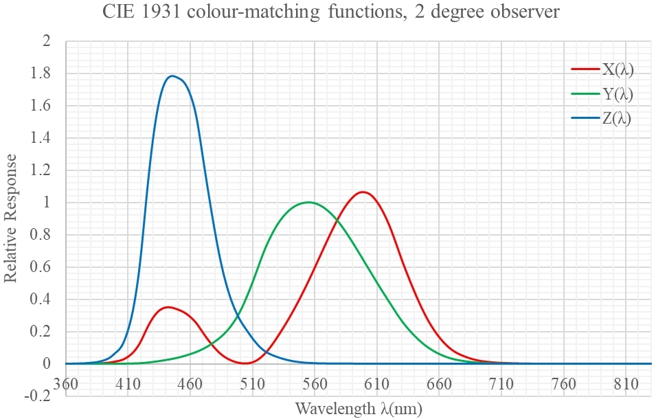 (λ)、Y(λ)、Z(λ)的3個探測器,那么得到的三刺激值為: