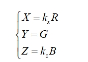 式中,kx、kz為色校準系數;R、G、B是儀器相應各探測器的輸出值。