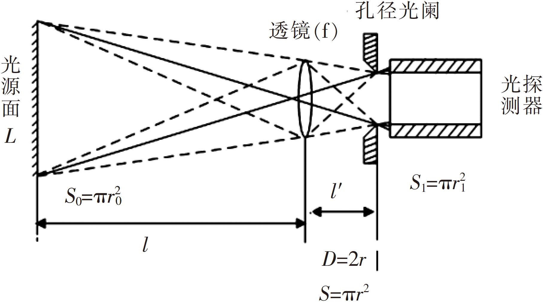 根據圖1,利用光度學和幾何光學的原理可以推出: