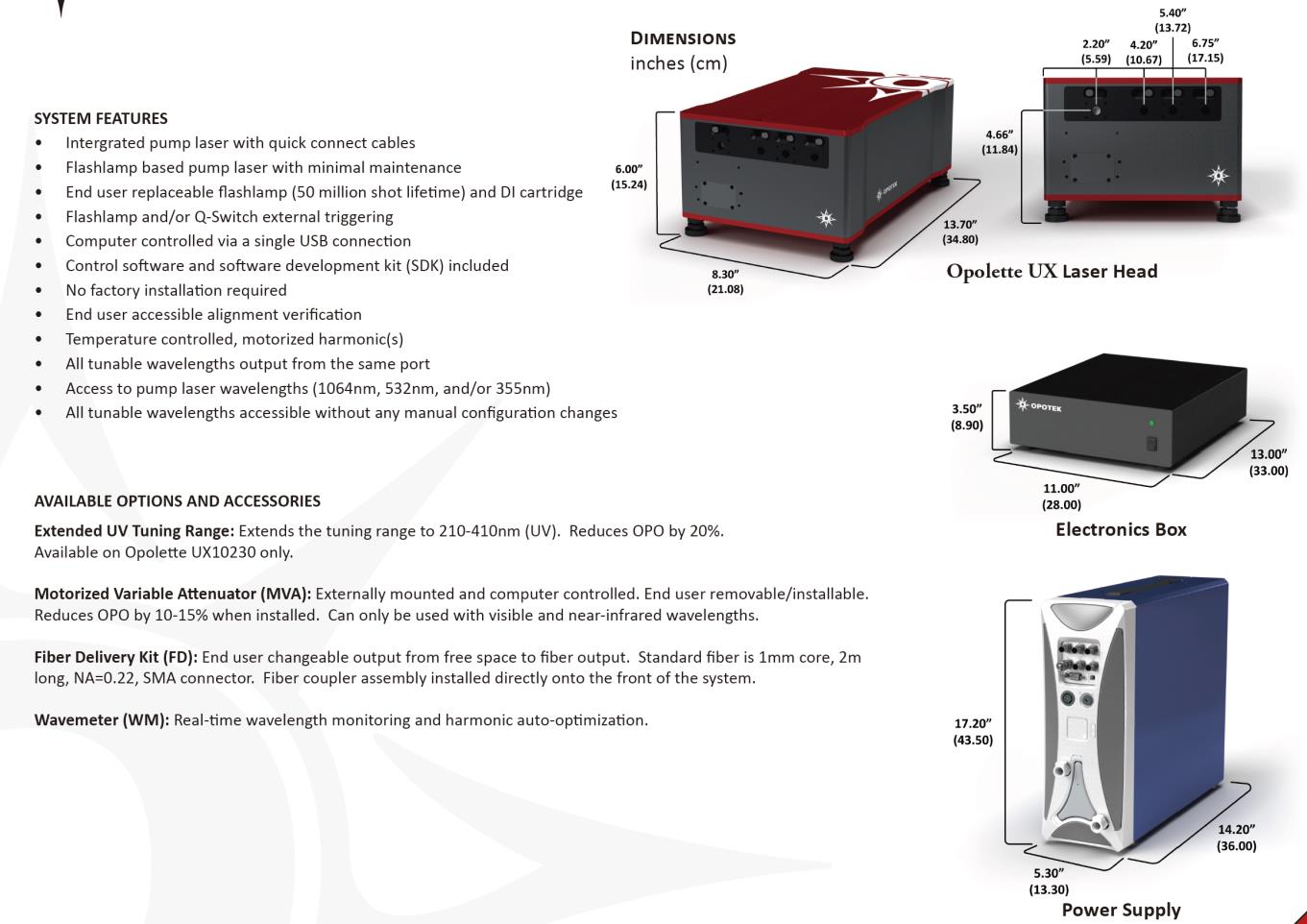 OPOTEK 公司持有傘形OPO、環形OPO 的**。其Radiant 系列和Opolette 系列采用II 類位相匹配,具備較小的發散角和相對較窄的線寬, 波長可覆蓋紫外 ~ 中紅外。