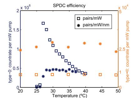 圖二.PPKTP 0型與II型自發(fā)參量下轉(zhuǎn)換表現(xiàn)