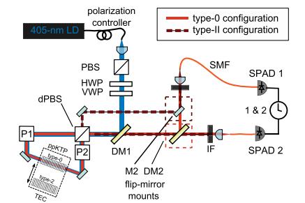 圖七. 0型和II型PPKTP晶體自發(fā)參量下轉(zhuǎn)換驗(yàn)證實(shí)驗(yàn)