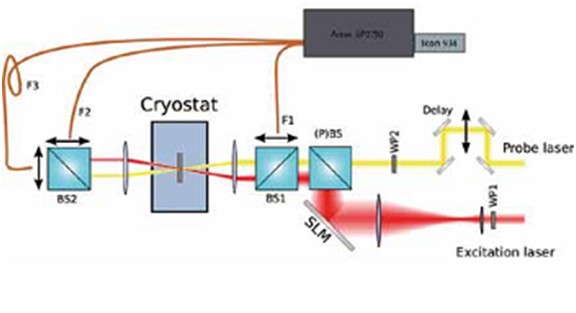 在實驗中采用脈沖鈦寶石激光器,空間光調(diào)制器,5K低溫制冷機,收集光路以及Andor SR750光譜儀以及 Andor DU934 深耗盡型CCD。在極化實驗中,為了能夠測試內(nèi)部空穴的特性,采用光纖收集反射或者透射的光。而在量子點的實驗中,收集的是量子點的發(fā)光。通過光纖,我們可以選擇不同的空間點進行收集。