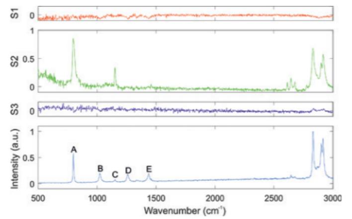 圖3:斯托克斯參數S1、S2和S3與環己烷的光譜的比較。上面三張圖的垂直比例相等。
