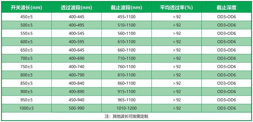 1:長波通濾光片(LPF)--只允許特定波長以上的光線通過;