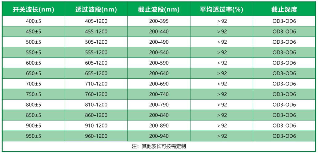 2:短波通濾光片(SPF)--只允許特定波長以下的光線通過;