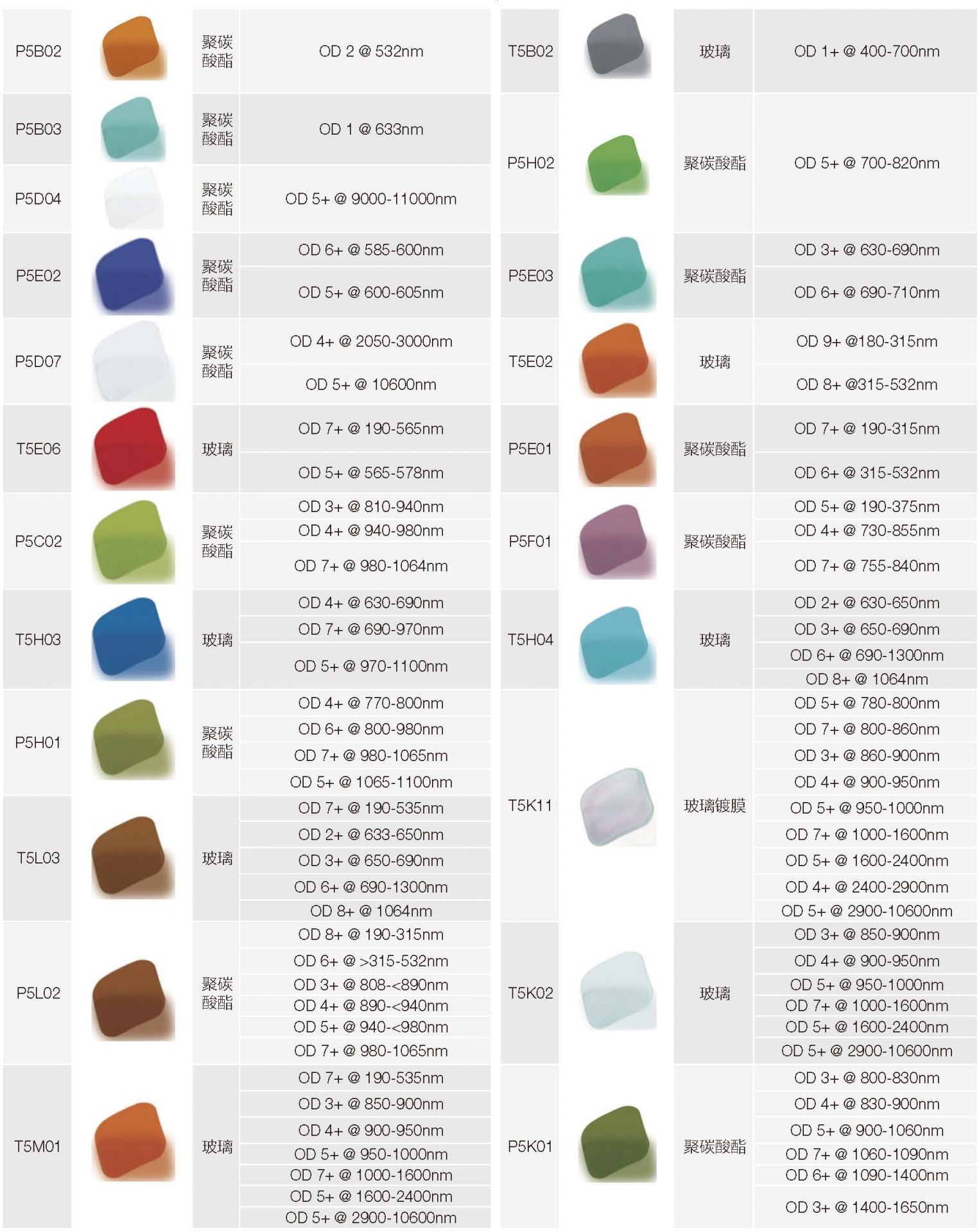激光防護鏡鏡片規格(防護鏡片選擇說明:OD 值(吸光度值)越高,防護性能越好。)