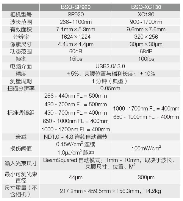 BeamSquared 提供四個型號,BSQ-SP920、BSQ-XC130為自動化系統, 分別適用266 ~ 1100nm 以及900 ~1700nm 范圍;BSQ-A 不包括相機,用于已有Spiricon 光束分析儀的用戶升級使用;BSQ-PY-M 是手動測量M2 的軟件系統,配合PyroCAM系列相機,實現交互式手動M2 測量,主要用于紅外波段。