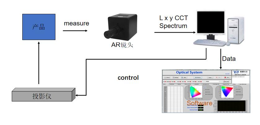 亮度分布均勻性、折光(反射畸變)、亮度、中心色坐標偏差、色坐標均勻性、亮度系數(增益)、FOV視角、虛像距離、虛像對比度等測試