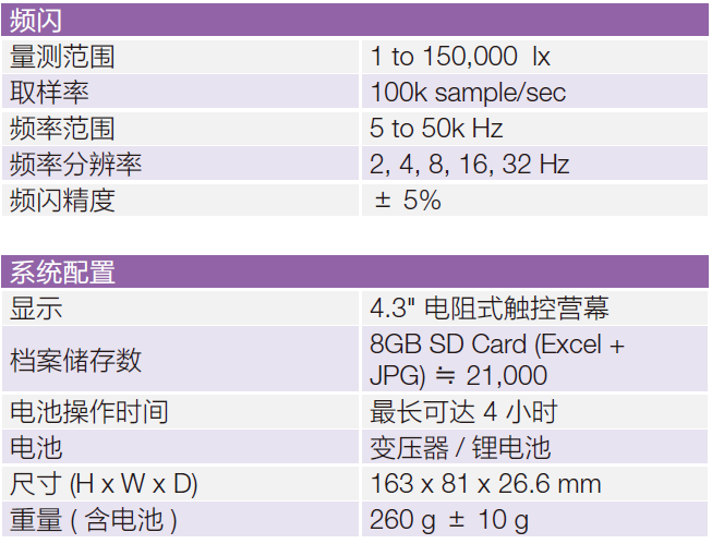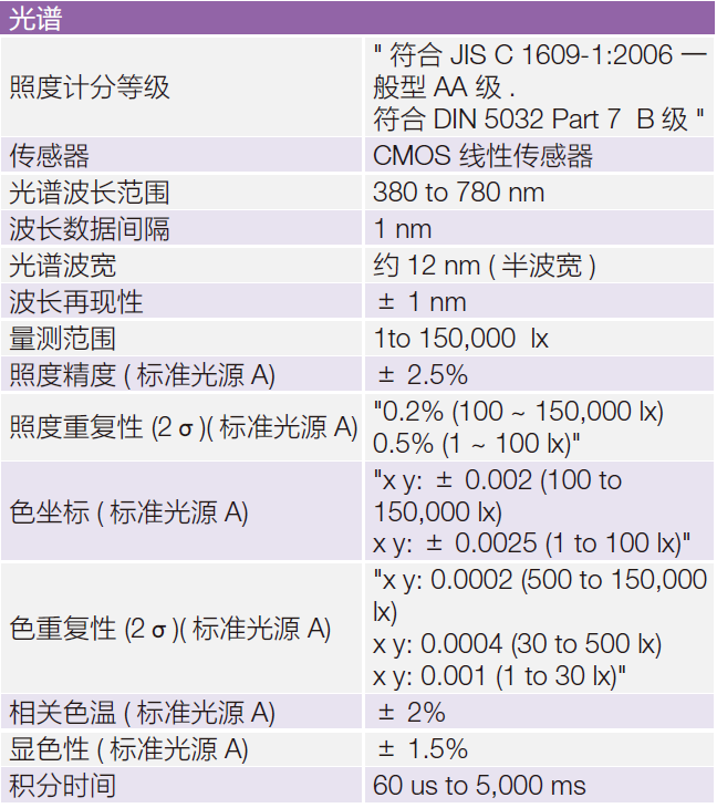 • 符合JIS AA 級& DIN B 級 照度計需求 ;