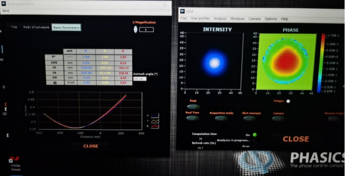 相位測量法是一種用于測量激光器M²因子的先進技術,它基于光束的波前相位信息來評估光束的質量。這種方法通過測量光束的相位分布,進而計算出光束的M²因子值。相位測量法的核心在于獲取光束的波前相位信息。該方案一般使用我司代理的法國Phasics公司的波前傳感器SID4系列產品,來測量光束的相位分布,進而計算出符合ISO標準的M²因子值。
