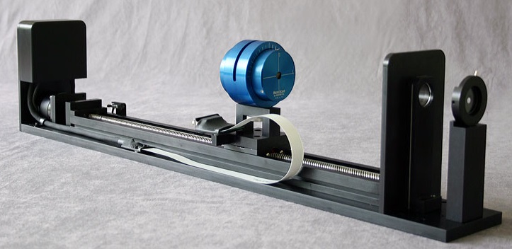 狹縫掃描式測量M²因子主要是使用狹縫掃描式設備代替光束質量分析儀,通常是OPHIR公司的NANOSCAN系列產品,通過收集狹縫掃描式設備收集X-Y兩個軸的光斑尺寸,然后擬合繪制出光束的光斑尺寸,再結合一維導軌測得束腰位置參數(shù),計算得M²因子。整套方案見下圖: