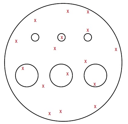 這里面需要提及的一點是,如預算允許,選擇激光功率較高一些一般不會錯。以上圖樣片為例,如果要做到同等的激光功率密度,功率低的激光往往作用到樣片上的光斑尺寸會遠遠低于高功率的激光(如上圖的三個并列小光斑作用區(qū)域和三個并列大光斑作用區(qū)域),如果紅色x點位都是樣片的缺陷點(也就是樣片上損傷閾值低的點位);很明顯高功率大光斑的激光擊打下,其漏采樣的危險性會遠遠小于低功率小光斑的激光。從經(jīng)驗上看,有此局部存在低損傷閾值點問題的樣片,其損傷閾值由于漏采樣而產(chǎn)生的損傷閾值測量偏差可能高達數(shù)倍甚至10倍以上(也就是說低損傷閾值的點位如果出現(xiàn)漏采樣問題的話,損傷閾值測試結(jié)果可能虛標10倍或更多)。所以,為了盡量規(guī)避漏采樣問題,建立激光損傷檢測實驗室時,選用預算允許范圍內(nèi)較高功率且原始光斑較大的激光可能更為有利。當然,為了徹底規(guī)避漏采樣問題,多花時間采用光柵掃描法可以做到覆蓋全靶面,而此時高功率大光斑仍然有利,因其可以更短的時間完成mapping。