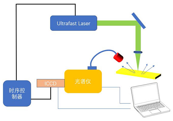 LIBS系統的主要構成有激光器,聚焦系統,樣品區域,時序控制系統,信號接收裝置,光譜儀和快速響應探測器(ICCD)等部分組成。如下圖所示:
