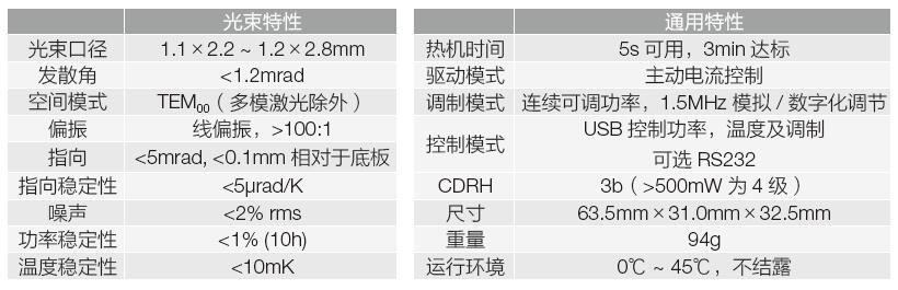 注:* 表示多橫模輸出;Diode Laser 輸出波長準確度為±1nm;
