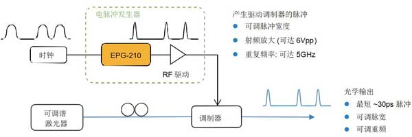 EPG-210皮秒電脈沖發生器可產生重頻、脈寬可調的皮秒超快電脈沖,用于觸發調制器或激光驅動器;提供高壓輸出選件可驅動絕大多數市售增益調制激光器;還可用于激光加工領域控制激光重頻和脈寬。