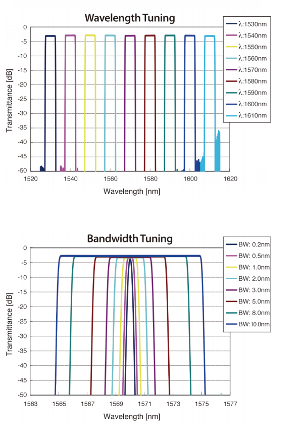 Santec OTF-350是一款多功能手動光學波長可調諧濾波器,波長和帶 寬獨立可調。獨立的高精度自由空間場和精準的可調節機 制可實現優異的光控制和頂部平坦的通帶形狀。