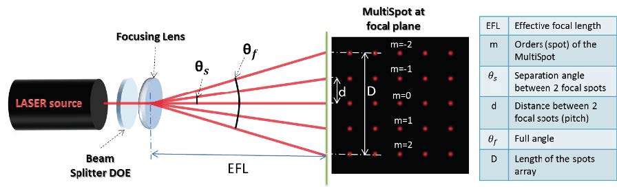 激光分束器可產(chǎn)生多個等間距、等強(qiáng)度的激光光斑,可用于激光并行加工等應(yīng)用。訂制的激光分束器還能產(chǎn)生非常復(fù)雜的編碼光強(qiáng)分布。