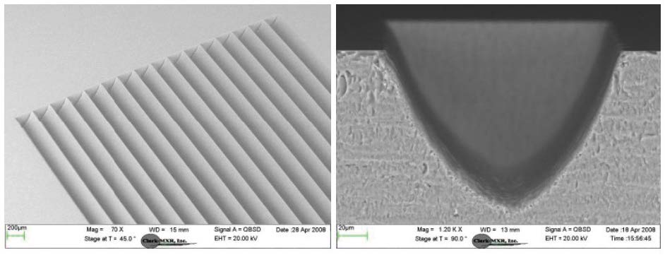 • 表面改性:納米尺度處理導致光學、化學、物理特性改變,如寬譜反射,低反射率,衍射表面,化學反應表面,高粘性表面等。