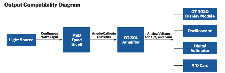 OT-301位置傳感放大器是市場(chǎng)上處理任何位置傳感檢測(cè)器(PSD)的電流 輸出最簡(jiǎn)單、最精確的方法。
