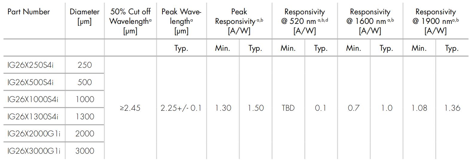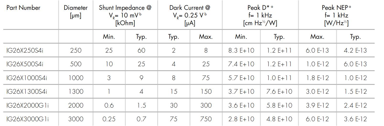 IG26系列探測器是全譜段的PIN結(jié)構(gòu)的二極管,其截止波長是2.6um. 這個(gè)探測器設(shè)計(jì)用于光譜測量和輻射計(jì)量應(yīng)用。它在提供優(yōu)異的分流電阻時(shí),還可以帶來寬譜范圍內(nèi)的優(yōu)良的響應(yīng)。