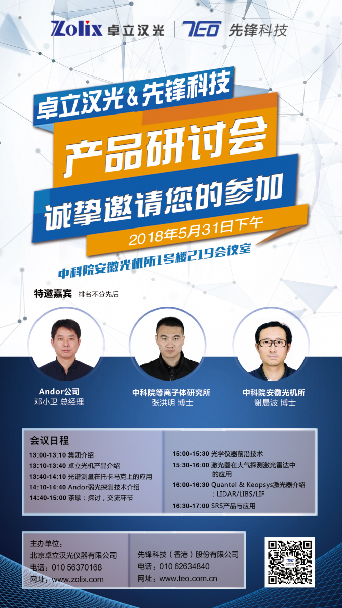 光電行業產品巡回研討會第二期時間:2018.5.31(本周四)下午