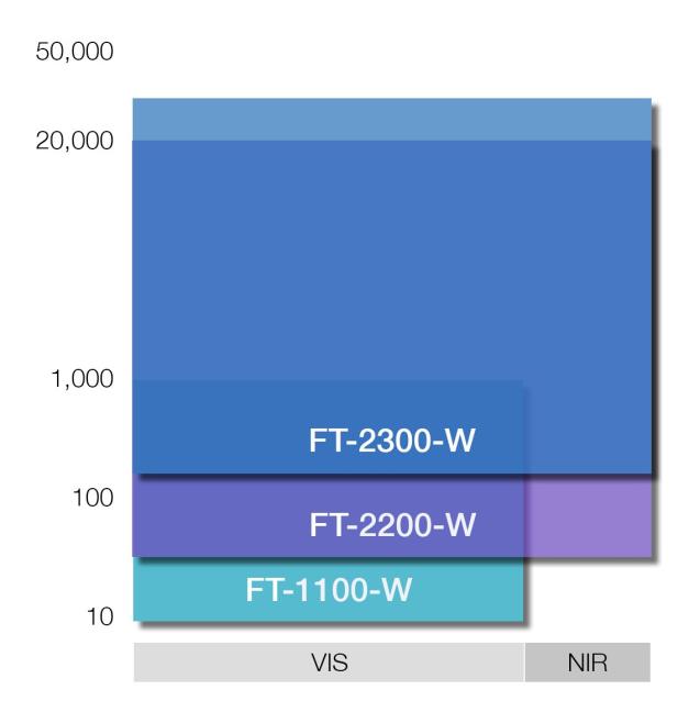 •VIS和VIS/NIR波段覆蓋10 cd/m2至25,000 cd/m2亮度輸出